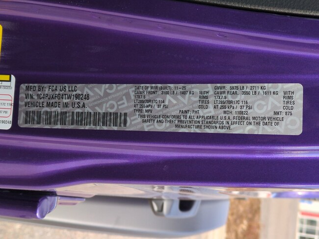 - VIN : 1C4PJXFG4TW190248