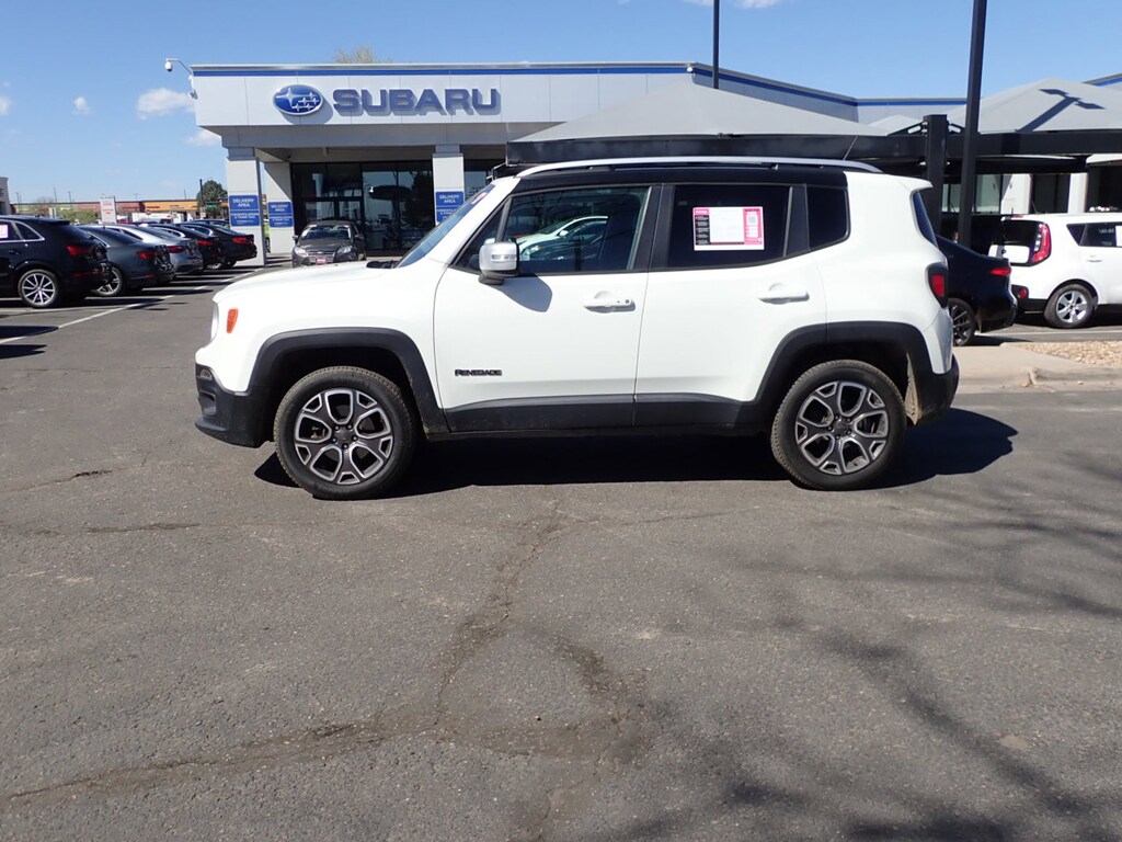 AutoNation Subaru Arapahoe is honored to present a wonderful example of pure vehicle design... this 2017 Jeep Renegade Limited only has 115,639mi on it and could potentially be the vehicle of your dreams! This Jeep includes: ENGINE: 2.4L I4 MULTIAIR (STD) 4 Cylinder Engine Gasoline Fuel *Note - For third party subscriptions or services, please contact the dealer for more information.* Want more room? Want more style? This Jeep Renegade Limited is the vehicle for you. Handle any terrain with ease thanks to this grippy 4WD. Whether you're on a slick pavement or exploring the back country, you'll be able to do it with confidence. With past service records included, feel comfortable knowing that the history of this Jeep Renegade Limited is provided in order for you to make a knowledgeable decision. Looking for a Jeep Renegade that is in great condition inside and out? Take a look at this beauty. You will never have to worry about keeping up with traffic in this Jeep Renegade Limited as it packs a beast under the hood. Equipped with many extra features, this well-appointed vehicle is a treat to drive. Intricately stitched leather and ergonomic design seats are among the details in which test drivers say that Jeep Renegade Limited is in a league of its own More information about the 2017 Jeep Renegade: The Jeep Renegade proves that Jeep styling can translate successfully to a subcompact crossover. Think: rewarding but practical. The smooth highway ride, well-shaped front seats and, optional Uconnect infotainment system give a modern vibe to the cabin. The Renegade's high profile and boxy design provide for plenty of headroom. The Renegade can be configured from rugged to elegant; it goes off-road and handles challenging weather and road conditions. The 2017 Jeep Renegade is the recipient of the IntelliChoice award for the 2017 SmartChoice Maintenance Costs Compact Utility category. Strengths of this model include Classic Jeep look provides for lots of visual interest, Trailhawk model provides best-in-class off-road capability, nimble handling in turns, and accessible and intuitive technology features Collapse Expand Pause Play