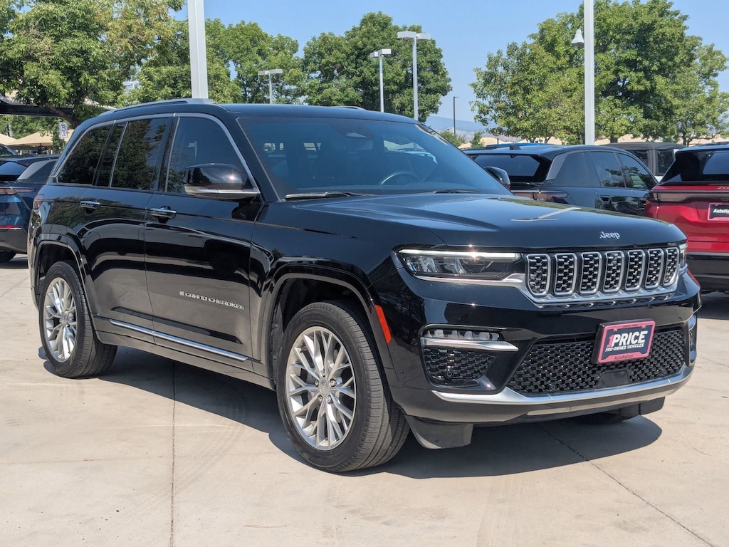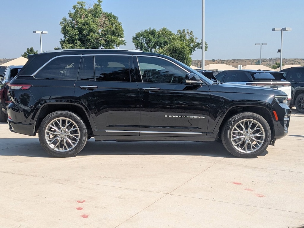 Thank you for visiting another one of AutoNation Chrysler Jeep West's online listings! Please continue for more information on this 2023 Jeep Grand Cherokee Summit with 20,072mi. This Jeep includes: MONOTONE PAINT ENGINE: 3.6L V6 24V VVT UPG V6 Cylinder Engine Gasoline Fuel DIAMOND BLACK CRYSTAL PEARLCOAT TRANSMISSION: 8-SPEED AUTOMATIC 8HP50 8-Speed A/T Transmission w/Dual Shift Mode A/T GLOBAL BLACK, NAPPA LEATHER SEATS Leather Seats Bucket Seats QUICK ORDER PACKAGE 23S *Note - For third party subscriptions or services, please contact the dealer for more information.* If you're in the market for an incredible SUV -- and value on-the-road comfort and manners more than ultimate off-road prowess or tow capacity -- you'll definitely want to check out this Jeep Grand Cherokee Summit. Pull up in the vehicle and the valet will want to parked on the front row. This Jeep Grand Cherokee Summit is the vehicle others dream to own. Don't miss your chance to make it your new ride. With 4WD, you can take this 2023 Jeep Grand Cherokee Summit to places roads don't go. It's all about the adventure and getting the most enjoyment out of your new ride. One of the best things about this Jeep Grand Cherokee is that it has low, low mileage. It's ready for you to truly break it in. Added comfort with contemporary style is the leather interior to heighten the quality and craftsmanship for the Jeep Grand Cherokee Summit. With an efficient and easy to use navigation system, this Jeep Grand Cherokee will help get you from Point A to Point B in no time flat.